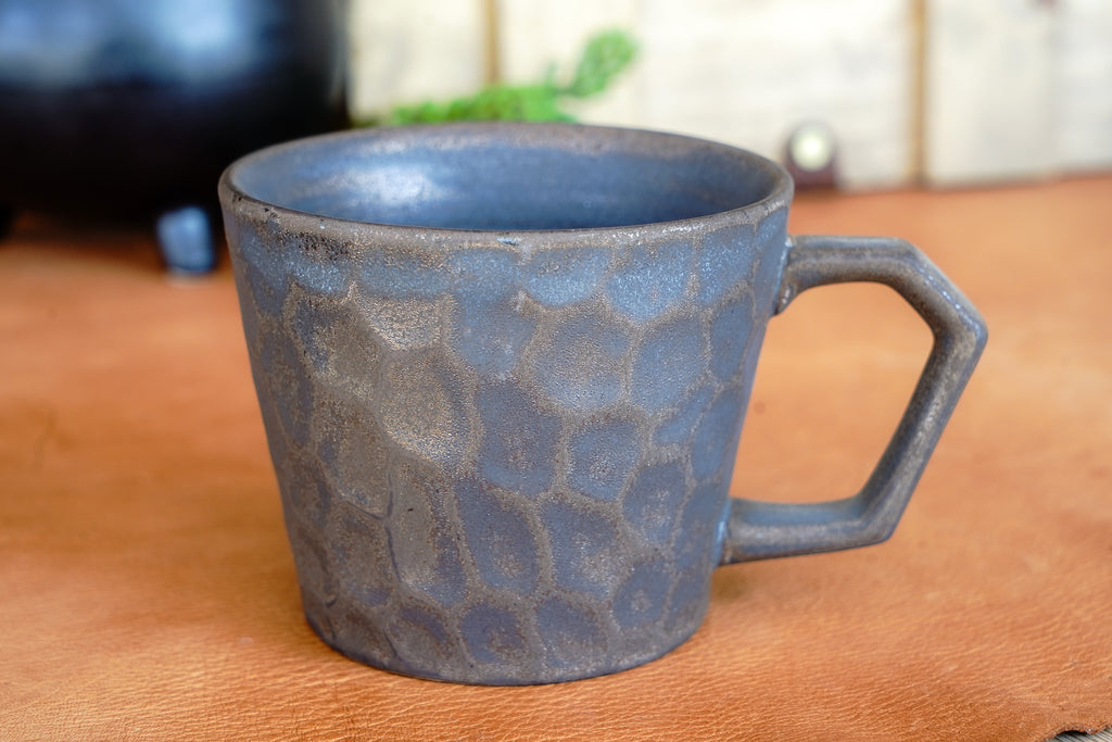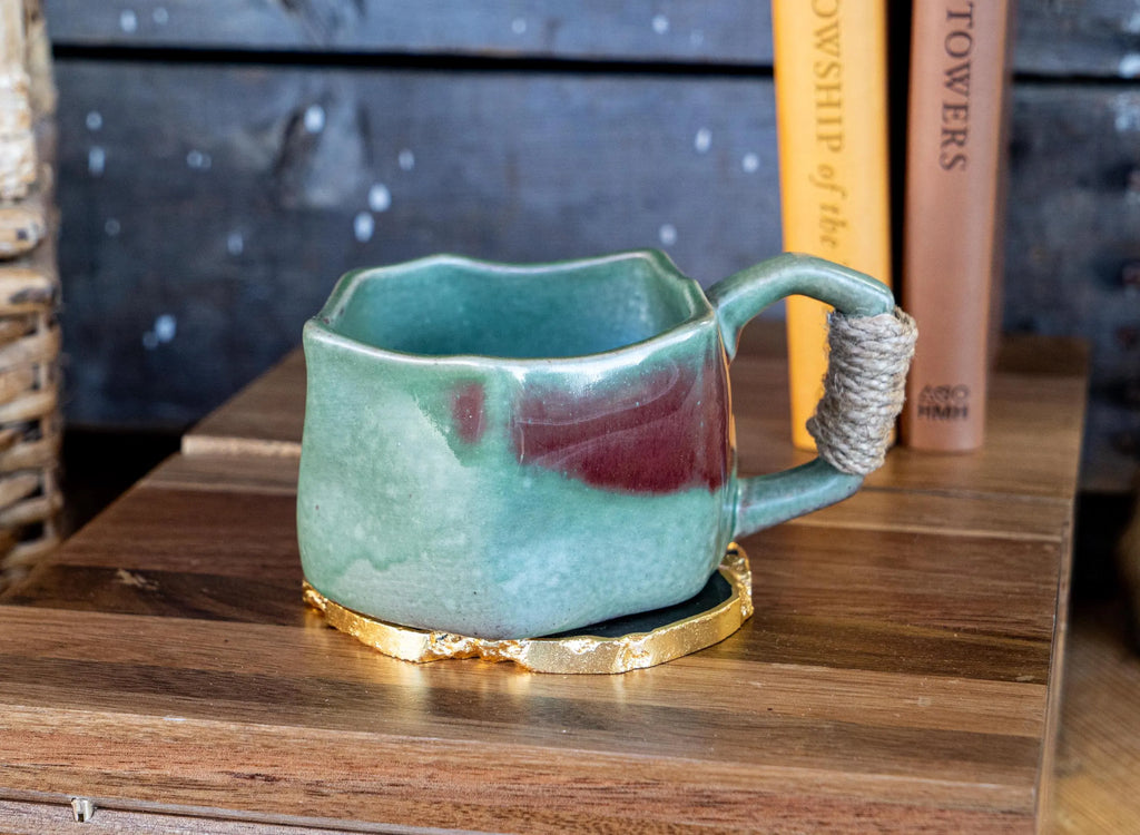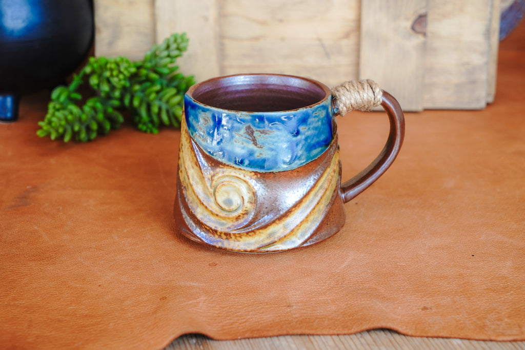 Rustic Handmade Ceramic Coffee Mug – Textured Stoneware with Earthy Glaze & Wrapped Handle